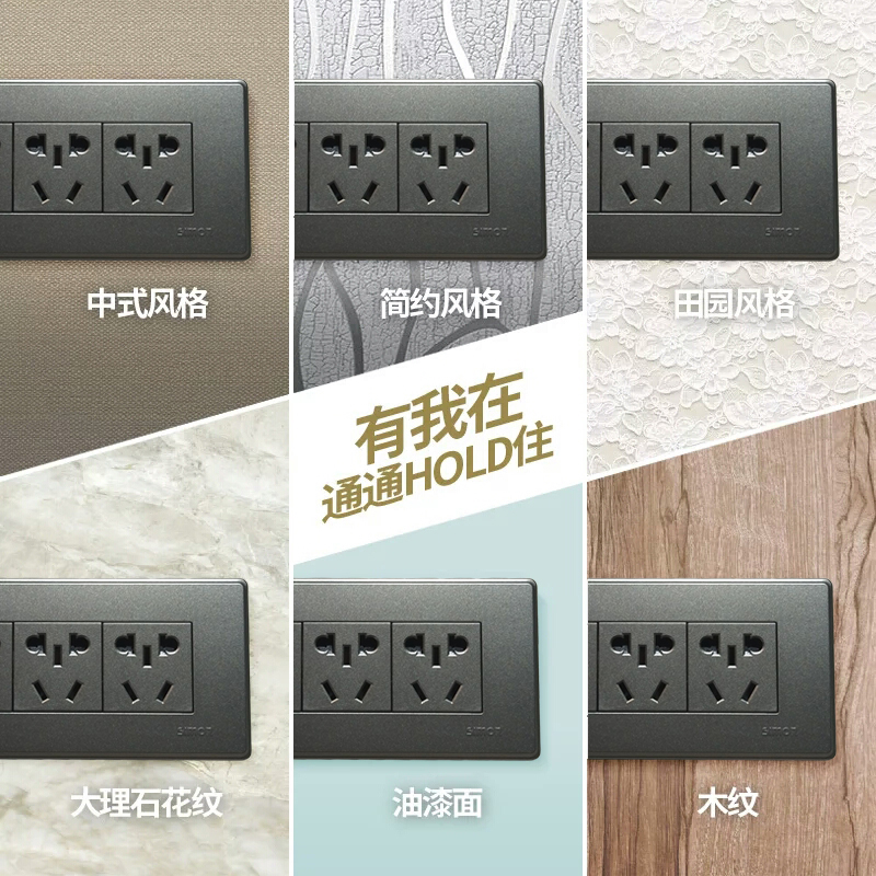 Simon switch socket 118 type popular fluorescent gray nine-hole two-three plug five-hole six-hole twelve computer panel