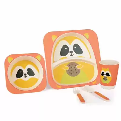 zolitt children's bamboo fiber tableware five-piece set plate baby cartoon rice bowl children's bowl spoon Fork