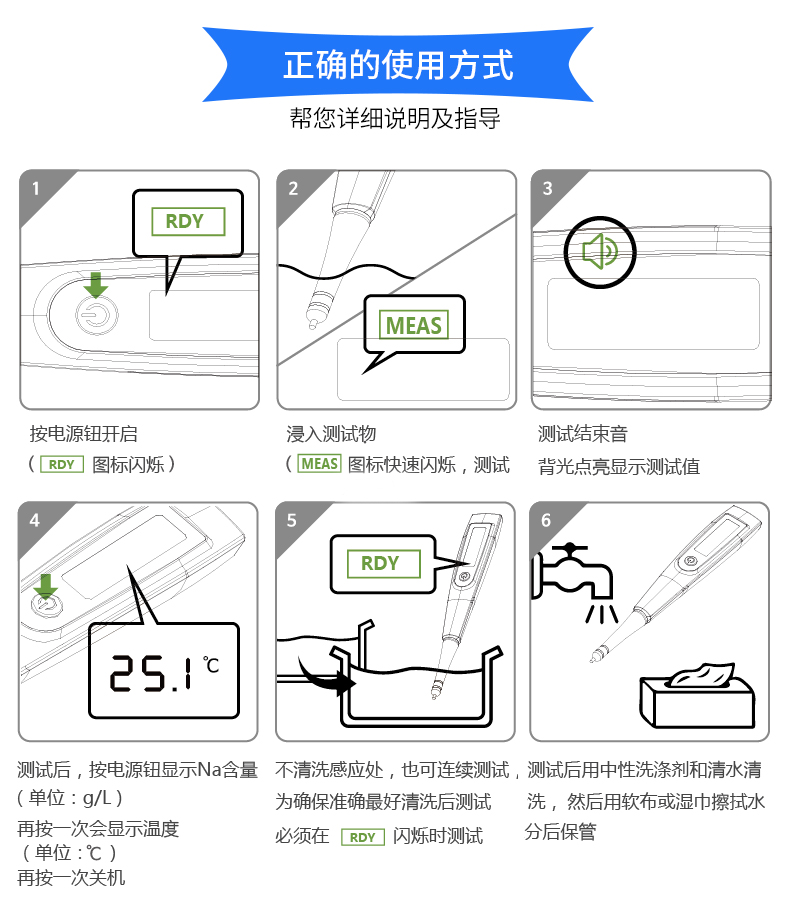 ■ Measurement range 0-5 % (household soup type) ■ Measurement range 0-10 % (brine meal meal type) ■ Measurement range 0-25 % (cured food type) seawater bacon