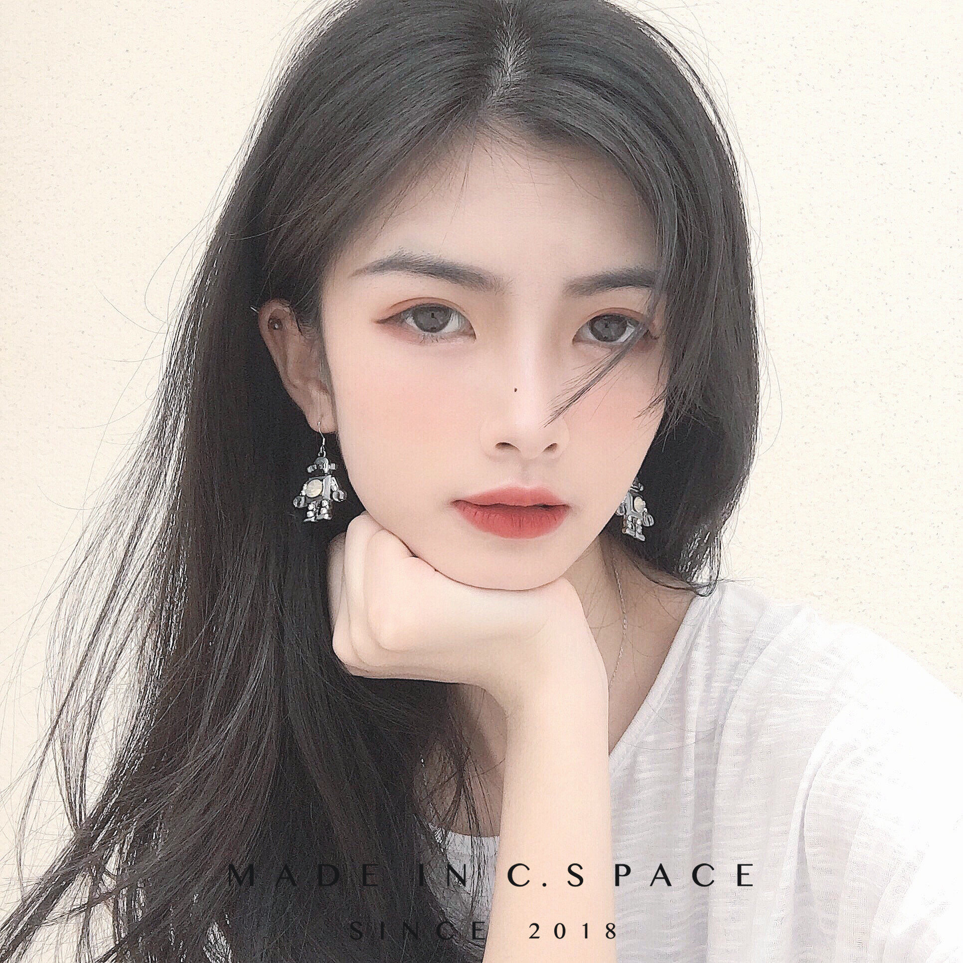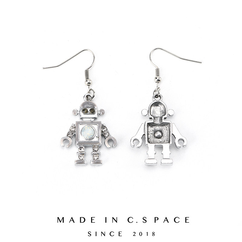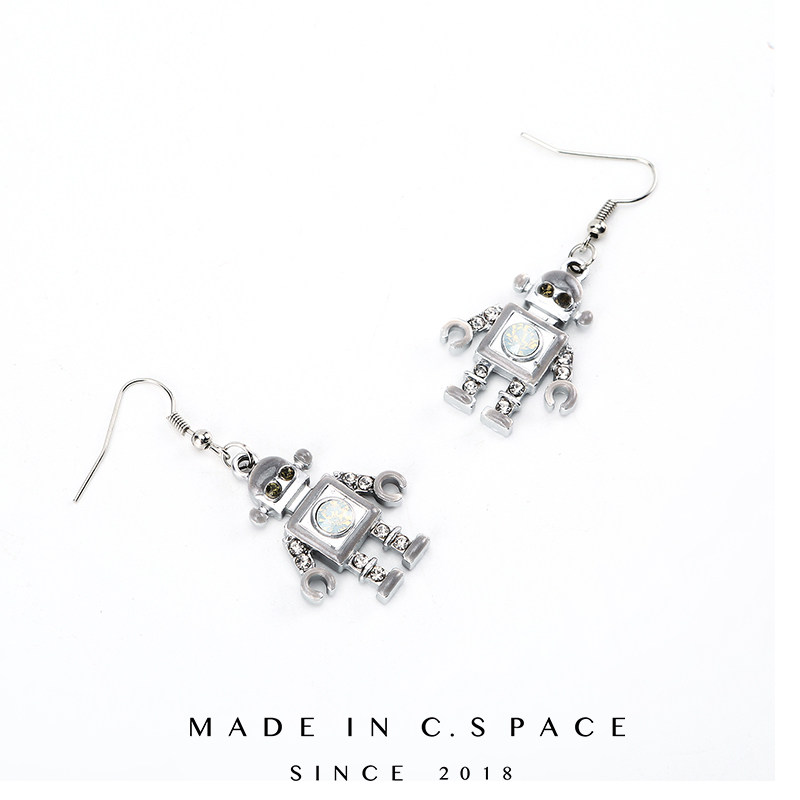 C.SPACE cool robot cute proud girl cold wind 925 Yinsen earring earrings earrings jewelry