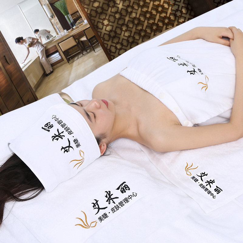 Beauty Towels Customized Logo Embroidery Pure Cotton White Package Headscarf Shop Dedicated Customization