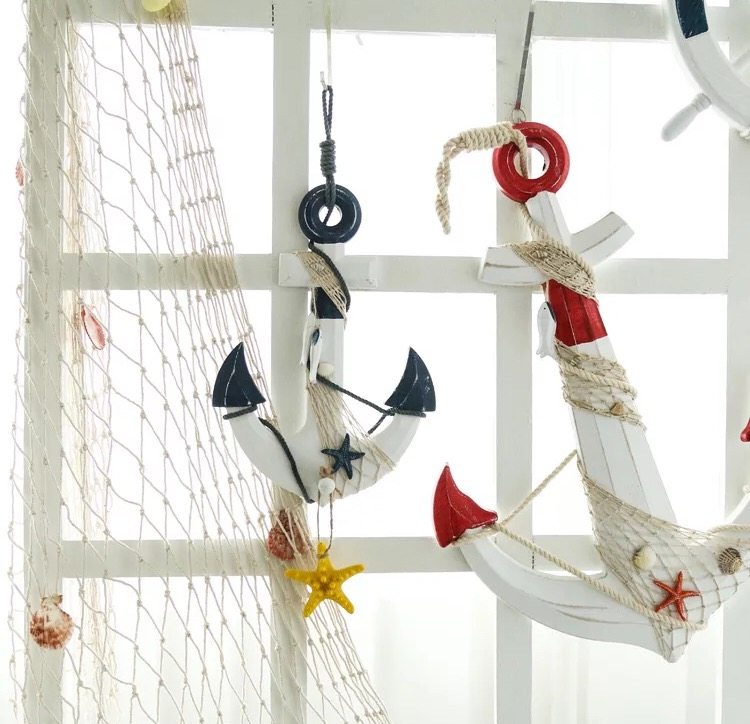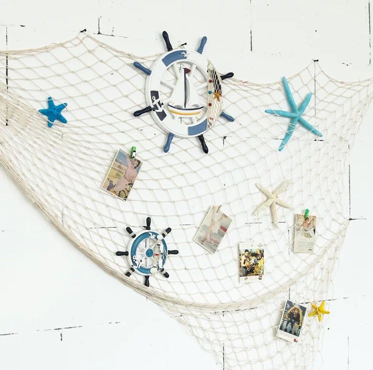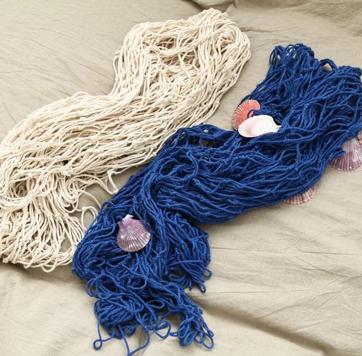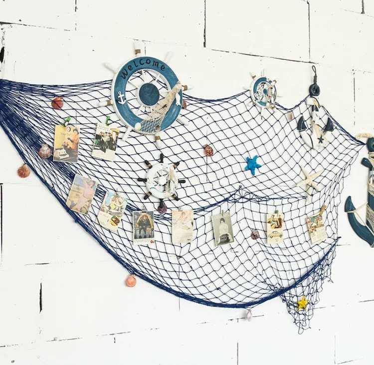 Kindergarten home wall creative diy Mediterranean fishing net hanging theme wall environment layout blue and white hemp net