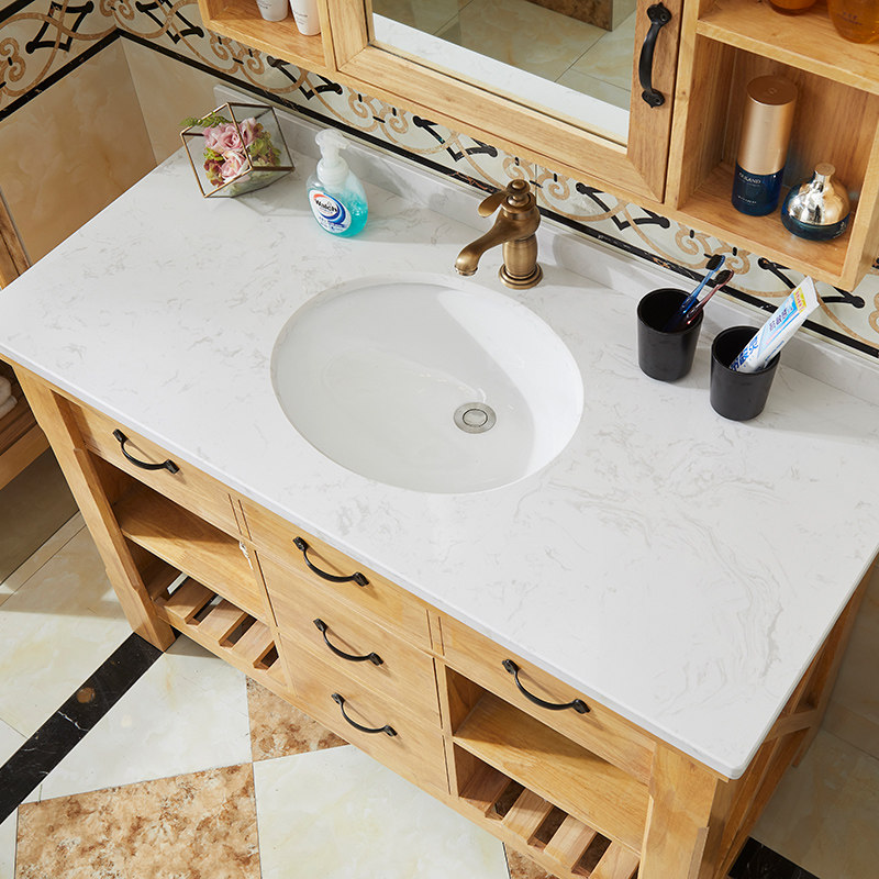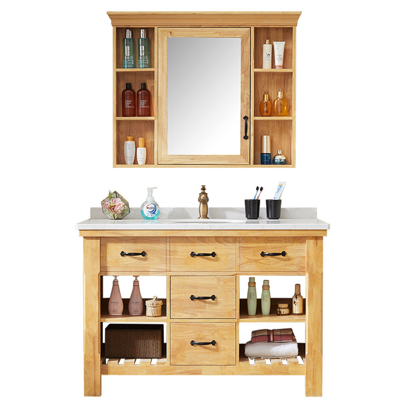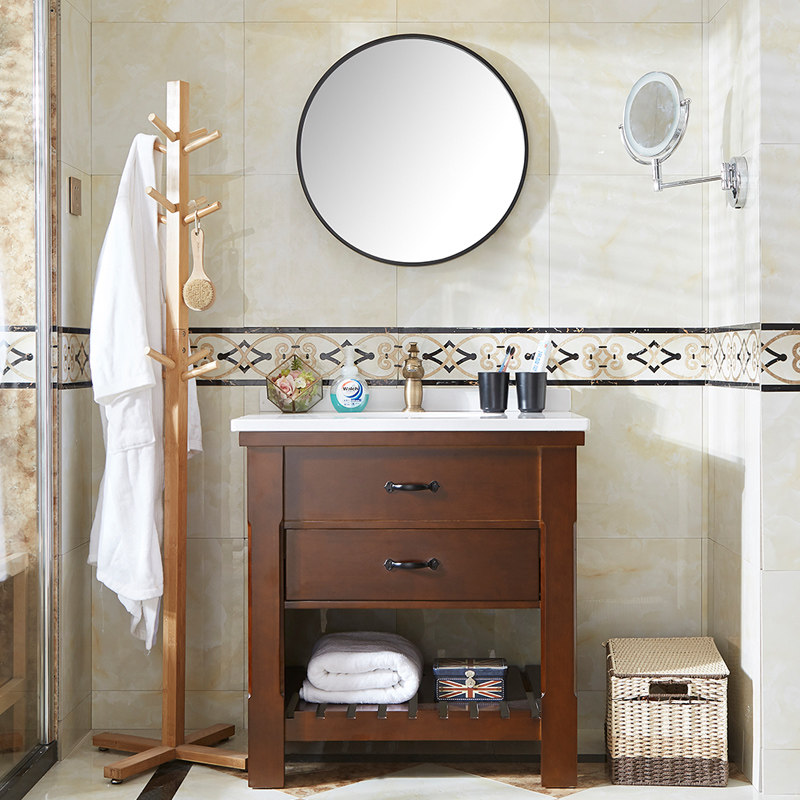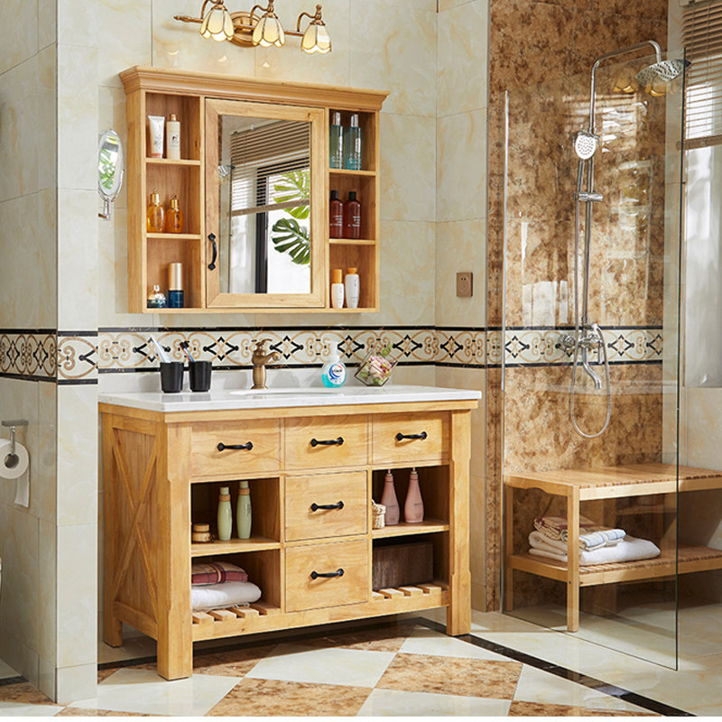 Customized Nordic bathroom oak American bathroom cabinet combination floor-to-ceiling washbasin log color washstand powder room
