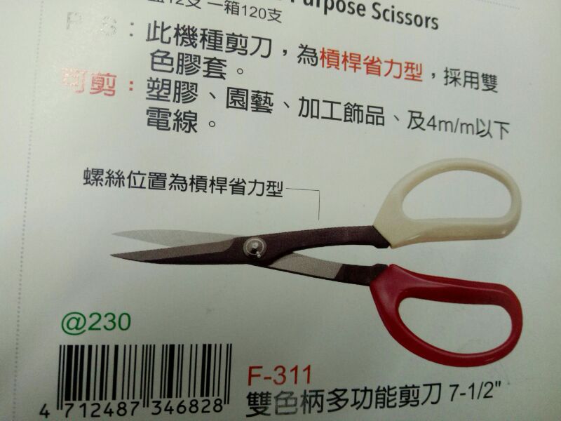 Taiwan rich sub-two-color handle multi-function scissors gardening scissors fruit scissors cut plastic wire F-311