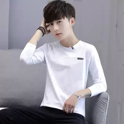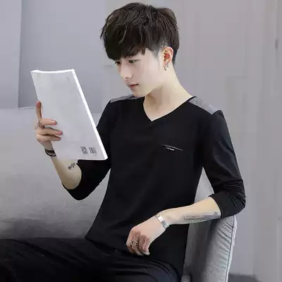 Men's long sleeve T-shirt V-neck cotton spring and autumn thin autumn clothes autumn clothes wear white base shirt