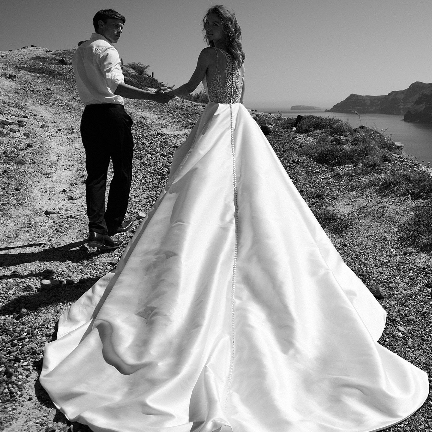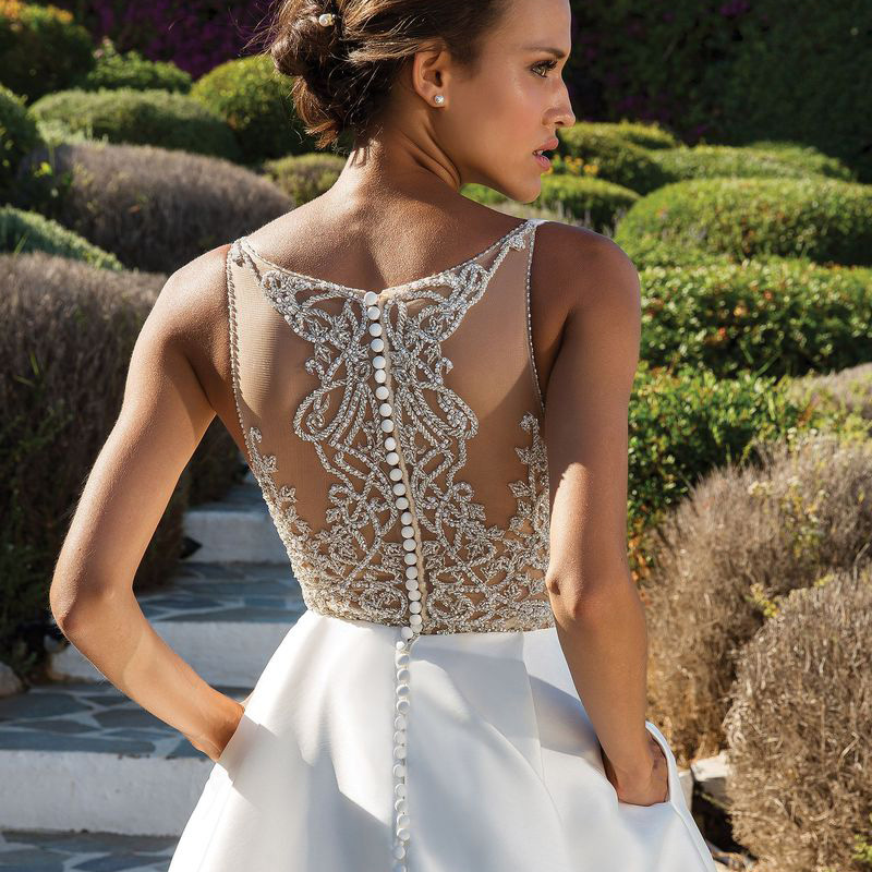 Satin wedding dress 2021 new bride wedding V-neck court vintage custom luxury heavy handmade sexy big tail