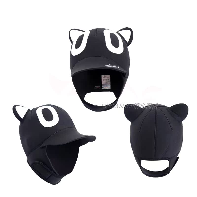 Hot sale AturDive cartoon headgear diving hat duck tongue anti-sun warm personality black cute cat
