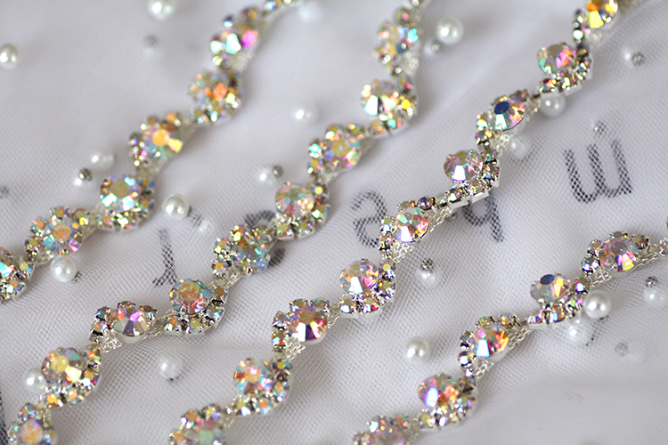 AB colour S shaped glass drilling neckline with neckline decorative drill choreography waist decorative waist chain wedding dresses decorative necklace