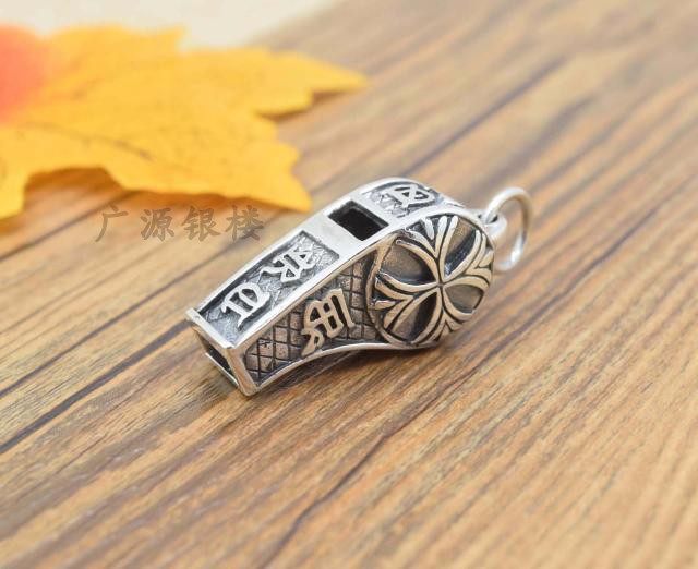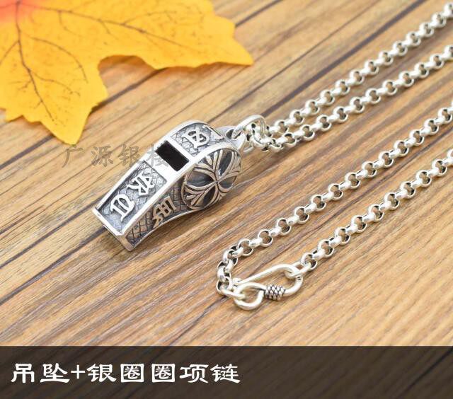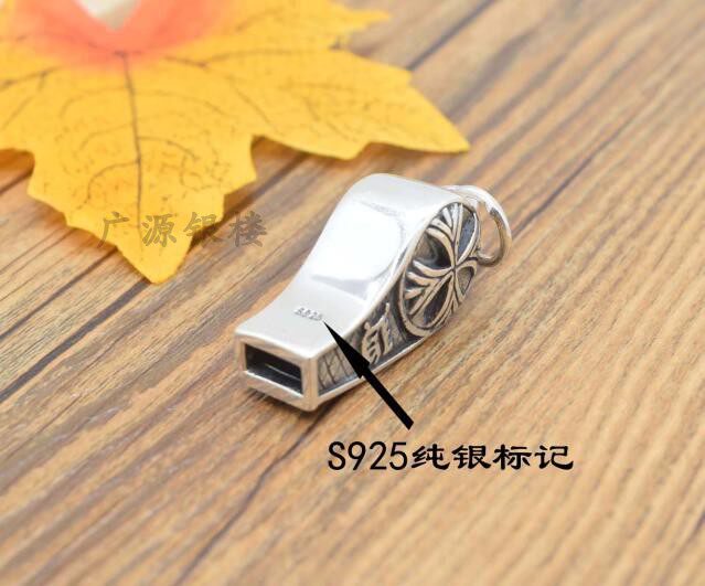 S925 pure silver mouth whistle necklace pendant can blow sentinel couple whistle Outdoor begging for sentinel retro Thai silver male pendant