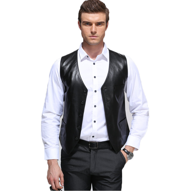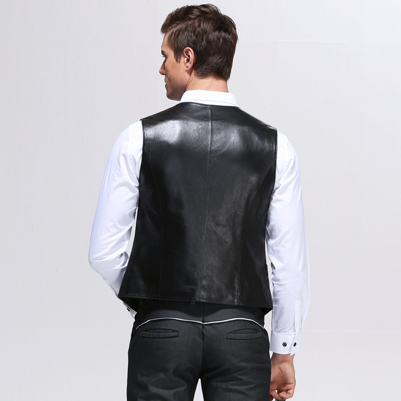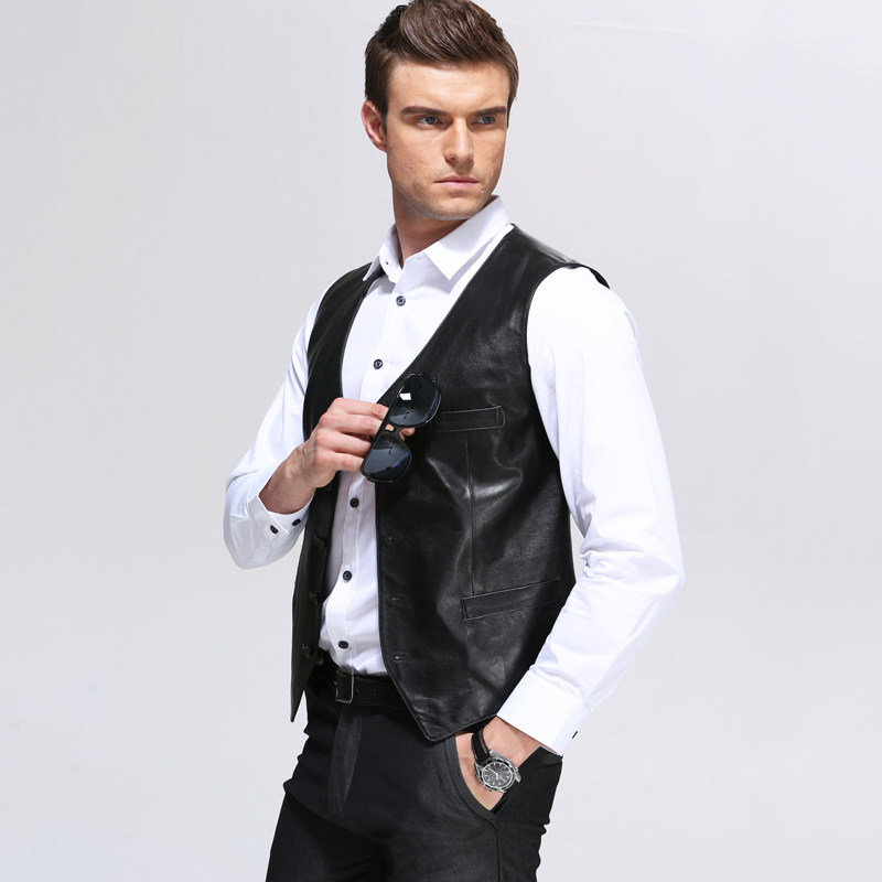 French leather vest men's thin slim business British suit vest short warm waistcoat leather vest spring and autumn