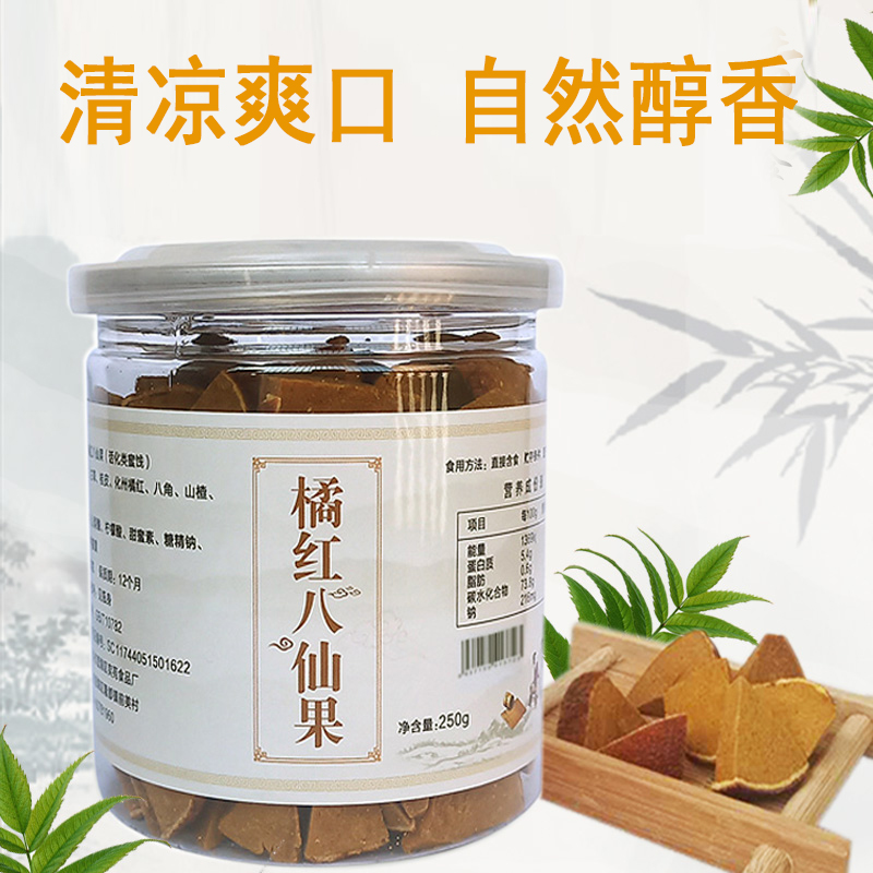 Orange, tangerine peel, licorice, star anise, hawthorn, white granulated sugar