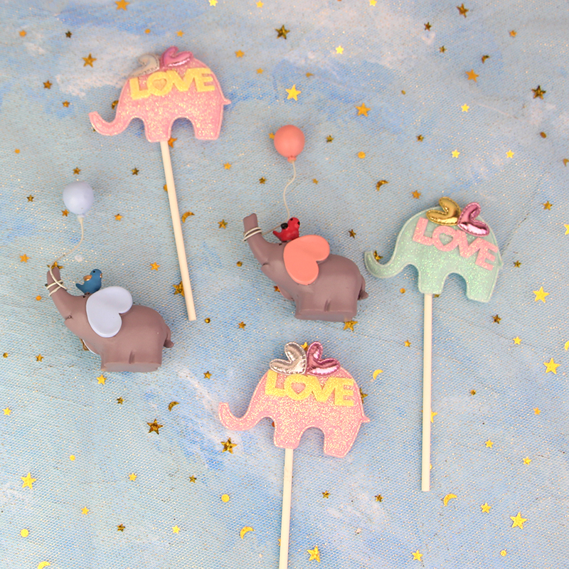 Party Arrangement Dress Up Blue Pink Love Small Elephant Love Small Elephant Birthday Cake Decoration Sweet Table Decoration