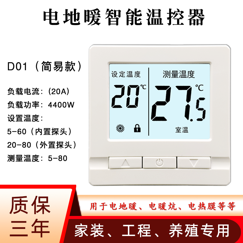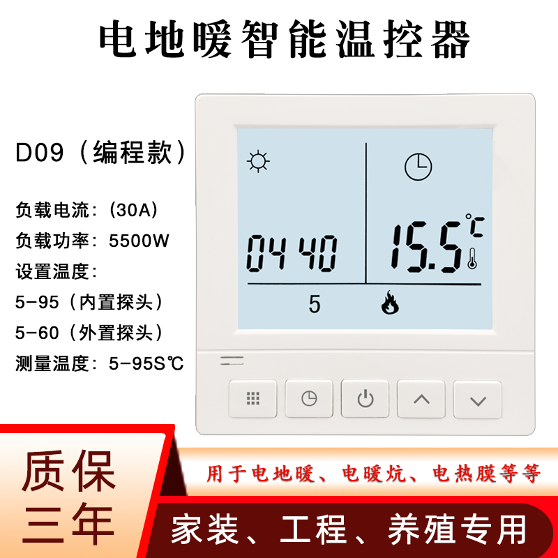 Intelligent electric floor heating thermostat carbon fiber electric heating temperature control switch geothermal electric heating film ondol panel