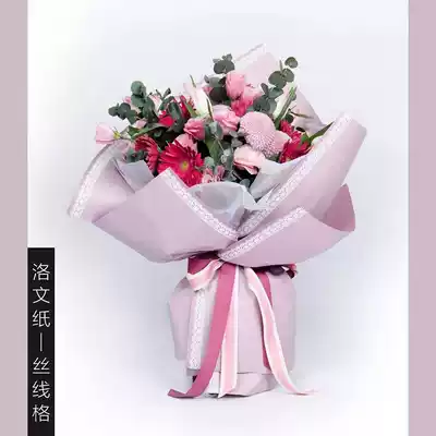 Gift flower wrapping paper loo grain paper literary fresh silk thread grid bouquet wrapping paper paper flower shop