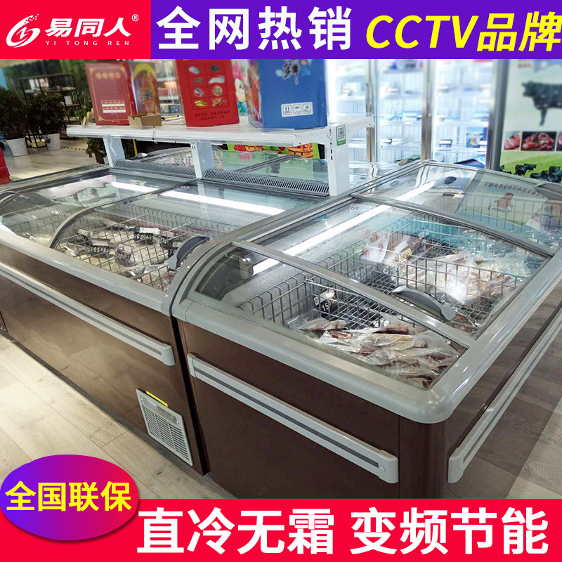 Supermarket Arched Surface Display Cabinet No Frost Combination Island Cabinet Commercial Ice Cabinet Horizontal Freezer Water Dumplings Seafood Frozen Cabinet