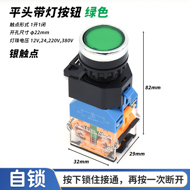 22mm silver point LA38-11D with LED light self-locking 11DS reset button switch 12v24v220v380v