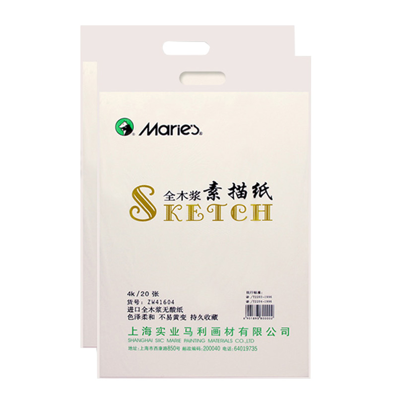 Marley 8k sketch paper 4 boiled water powder paper 160g thick fine art painting Malwood wood pulp lead painting paper Fine art exam drawing paper speed writing paper thickened 8-open horsepower wholesale hand-painted paper
