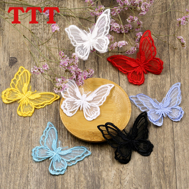Black and white lace embroidery cloth stickers diy transparent mesh butterfly Eugen yarn decorative patch stickers clothes pants decals