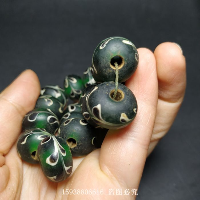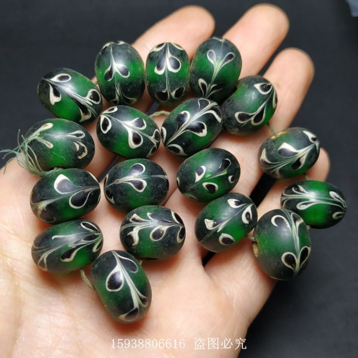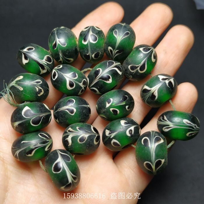 Antique old antique collection of old glazed green anchovies of old glazed bar bar string of Buddha beads old objects
