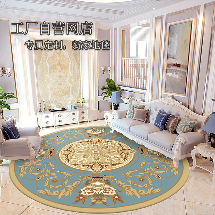 Imported wool round luxury European-style American living room bedroom high-end handmade villa blue dining room carpet customization