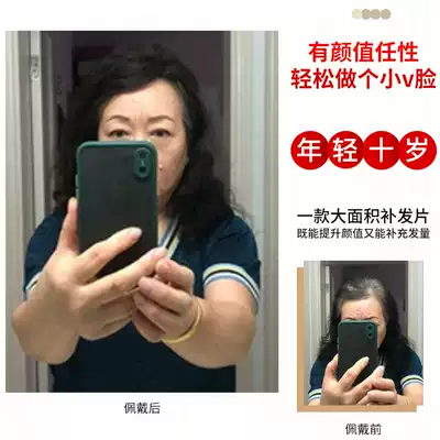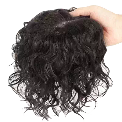Overhead hair patch to cover white hair Ladies ' real hair Invisible and incognito bangs wig piece Middle-aged and elderly hair patch curly hair