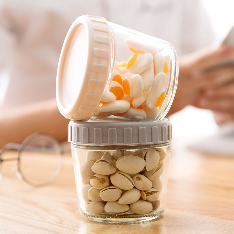 Stackable glass sealed jar with lid Kitchen transparent jar Household candy jar Glass bottle Grain storage jar