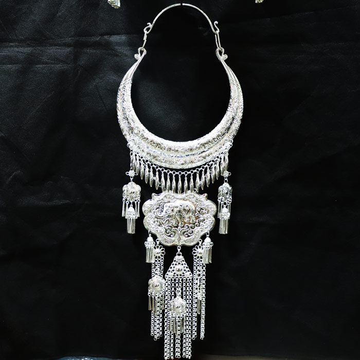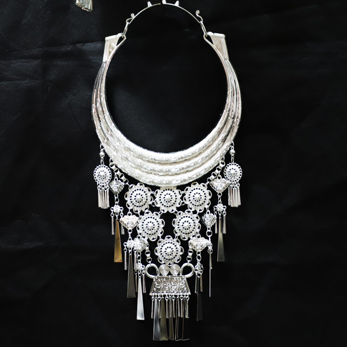 Bride Dowry Miao Ethnic Group Silver Collar Stage Performance Props National Wind Long Hanging Stream Su Supermortal Temperament Exaggerated