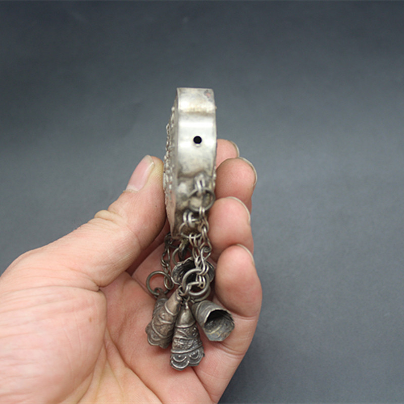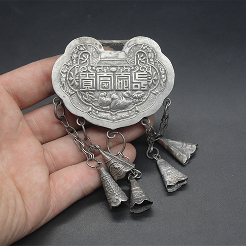 Antique miscellaneous collection Antique silver card shoe buckle piece Kirin send child silver lock piece copper lock piece