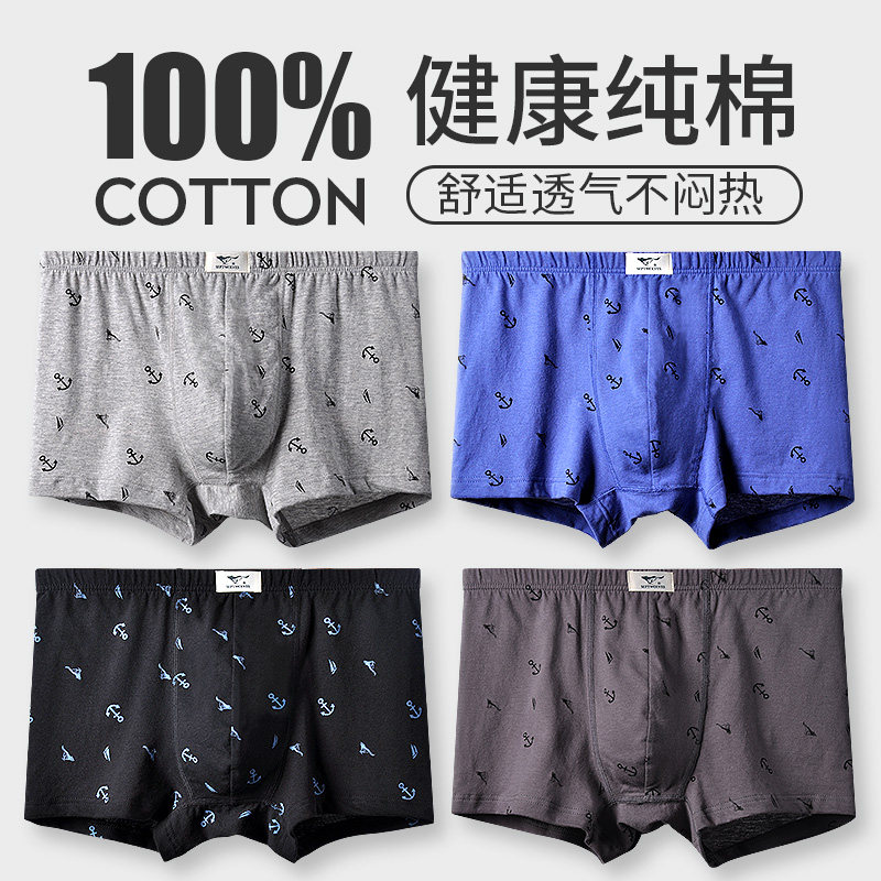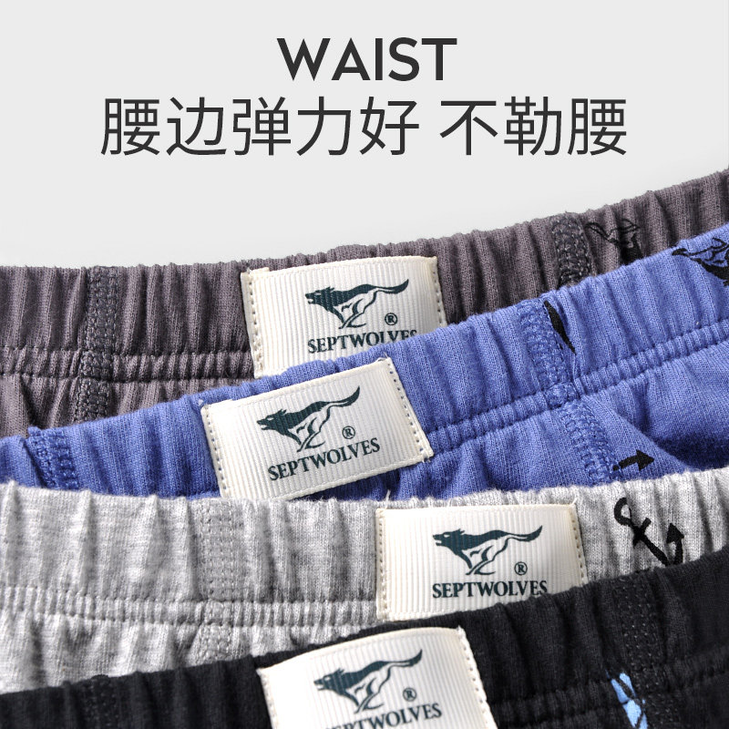 Seven wolf pure cotton men underpants quadruple pants youth breathable tide personality cotton large-code loose version comfortable horn