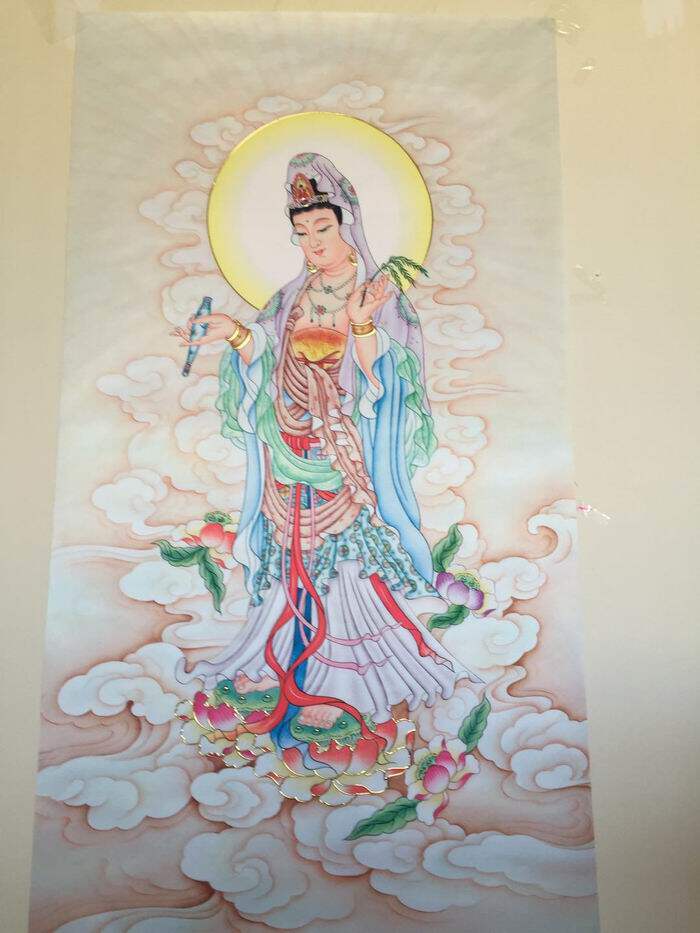 The Amitabha (semi-handmade) whole set of Western Sanholy (semi-handmade) dripping Guanyin (semi-handmade) large trend to Bodhisattva (half-handmade) Three Paver (framed and framed painting) Western Sanholy (framed and framed painting)