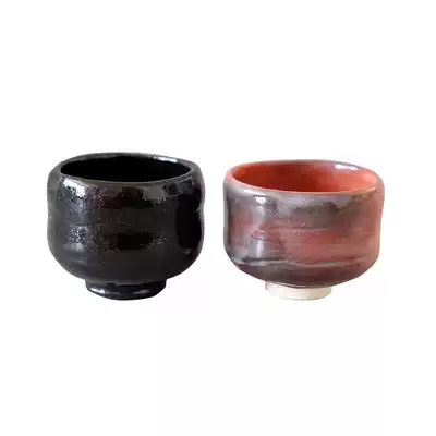 Japanese-style imported Raku yaki black Raku red Raku fan You tea bowl Shoule made tea cup soup swallow small matcha bowl Hand-made works