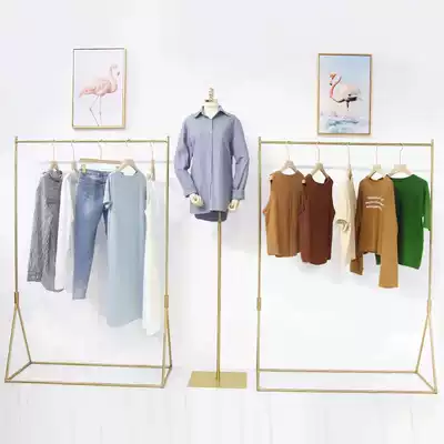 Clothing store display rack Golden clothing rack floor-standing stainless steel Nakajima rack Women's store display combination shelf