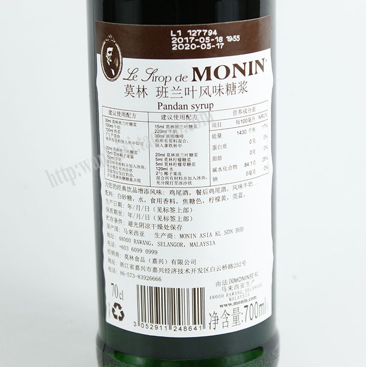 Morin MONIN BRIGHT YELLOW LEAF SYRUP BANLAN LEAF 700ml Coffee cocktail Juice Drink