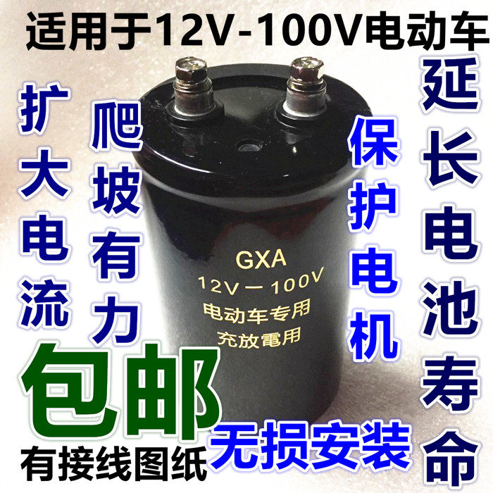 Two-wheeled tricycle electric vehicle speed-up capacitor 72V60V48V100V universal protection battery voltage regulator extension