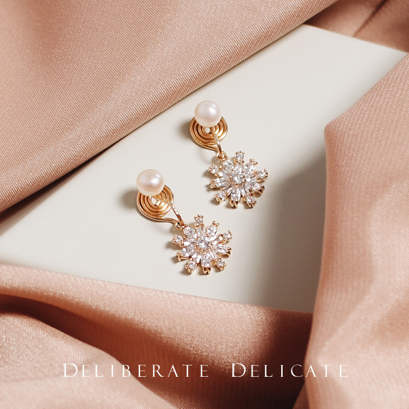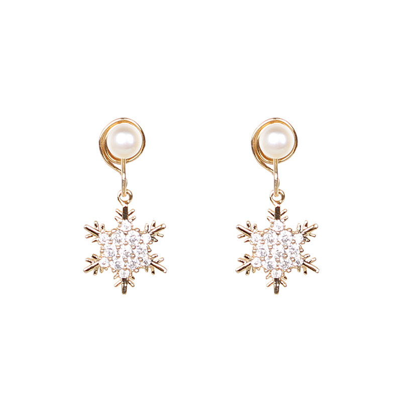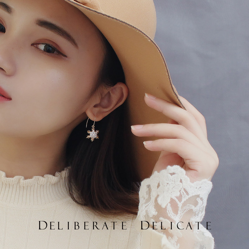 DD snowflake zircon gold mermaid Jisen series Super Fairy earrings exquisite elf mosquito coil ear clip girl earrings
