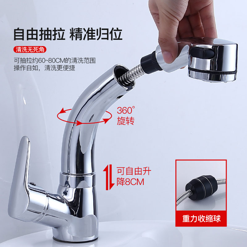 Dressing room pull-out tap hot and cold bathroom Terra basin swivel tap Home All copper washbasin tap telescopic