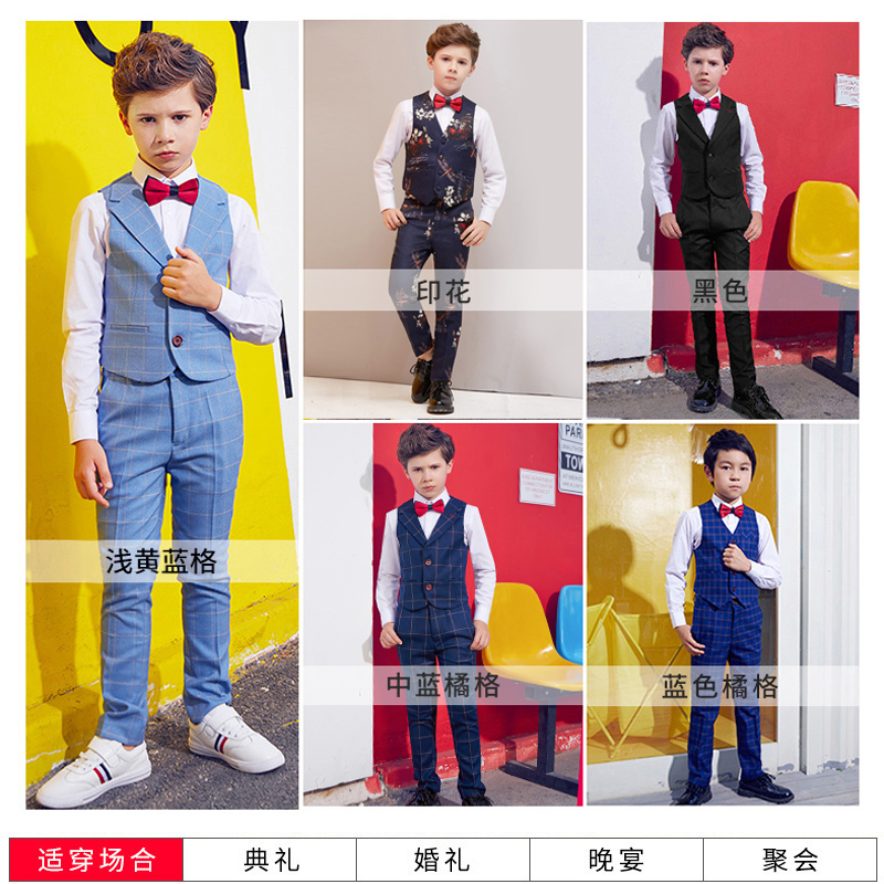 Children's Gown Boy Flowers Boy Suit Gown Suit Walking Show Host Performance Suit CUHK Boy Piano Show Out