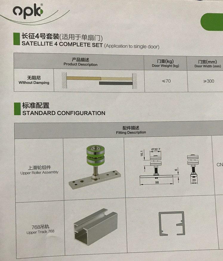 OPK Europaq Long March 4 universal gondola multi-fan folding door suspension pulley bearing 70kg for one price