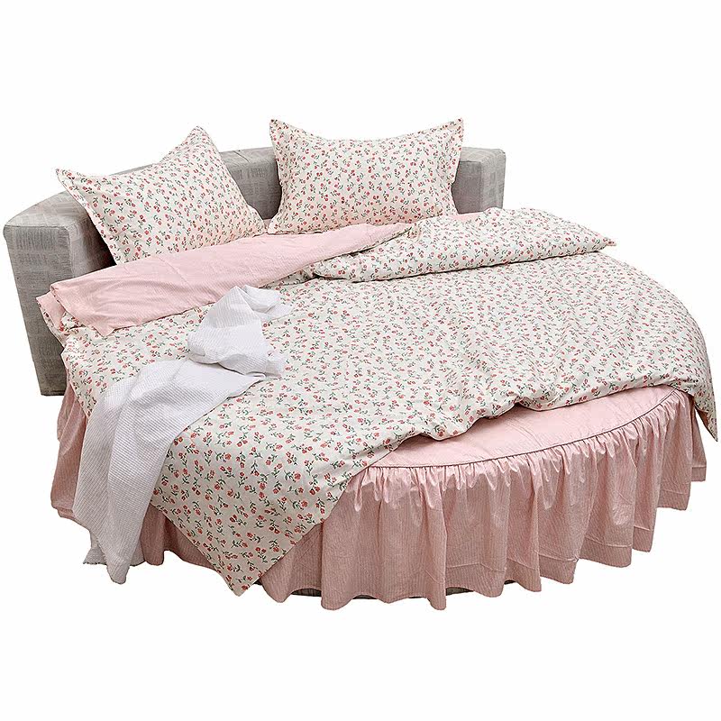 22 New cotton cotton bed four - piece skirt - style national wind - crushed flower suite round bed can be customized powder
