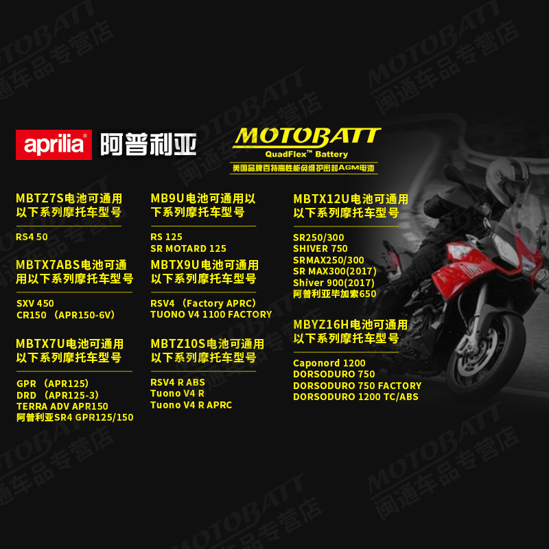 Apulian SR4 125GPR125 150TERRA ADV APR150 motorcycle battery 12V battery
