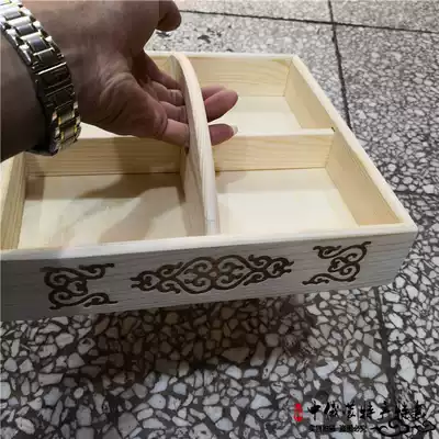 Mongolian specialty handicrafts solid wood fruit plate 4 grid milk candy wooden plate split melon seed plate snack box Mongolian meal