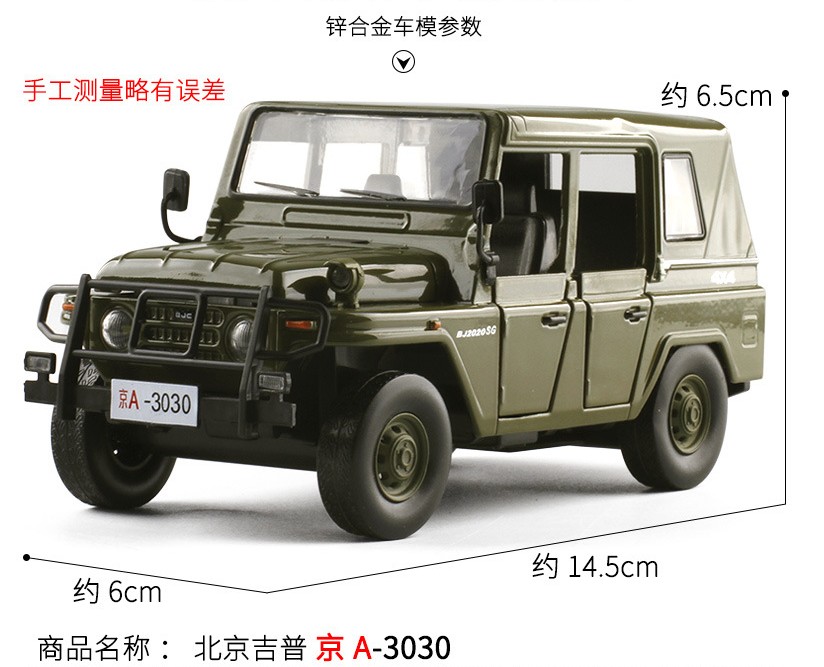 Alloy 1:28 Beijing Jeep 2020 Metal BJ2020 Off-road Car Military Simulation Car Model Pendulum
