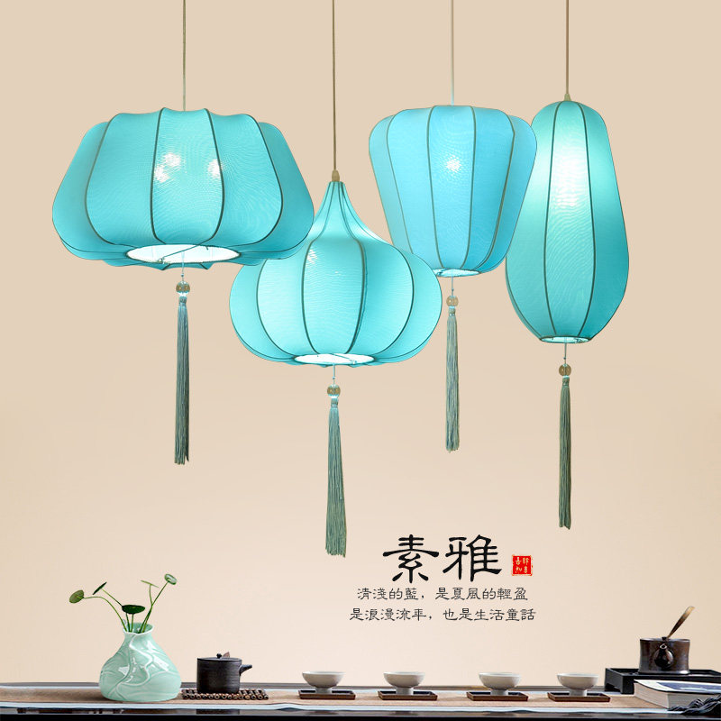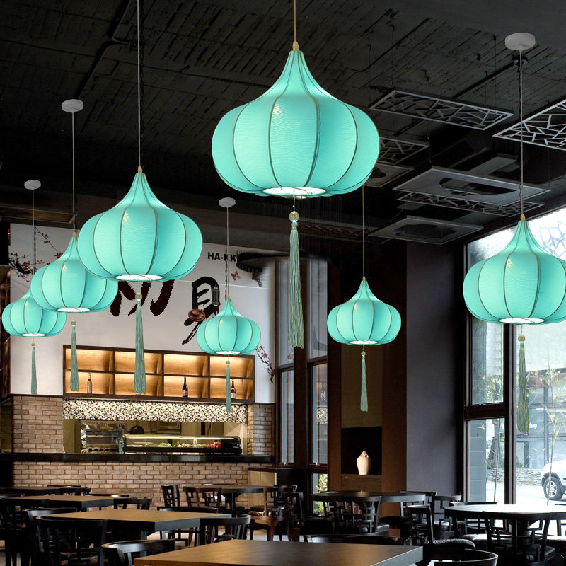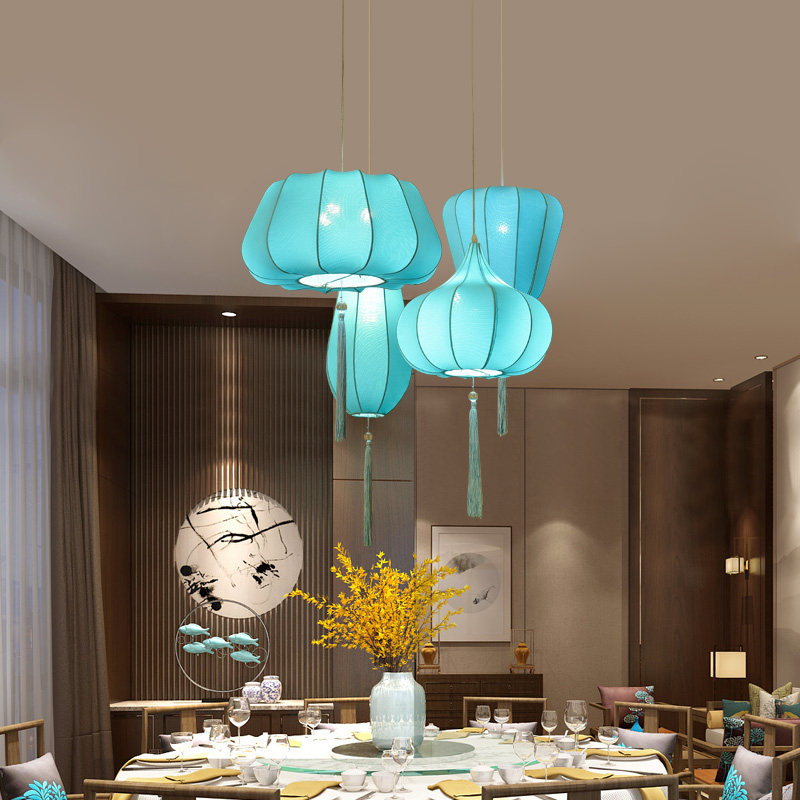 New Chinese hot pot shop chandelier Chinese fan restaurant tea room restaurant tea room fabric lantern lamps
