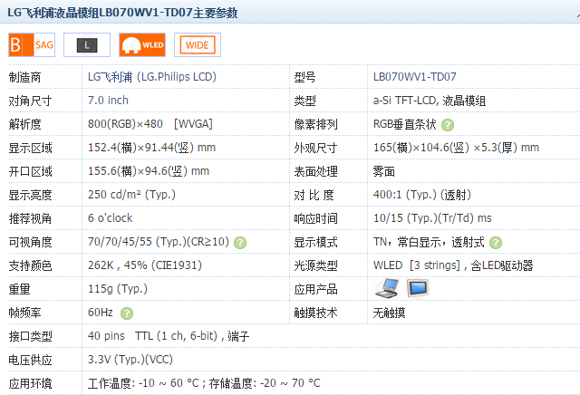 Original fit LG7 0-inch LB070WV1-TD07 LB070WV1-TD08