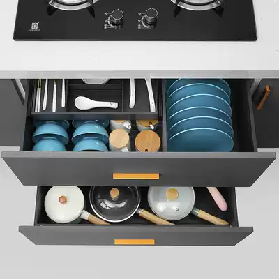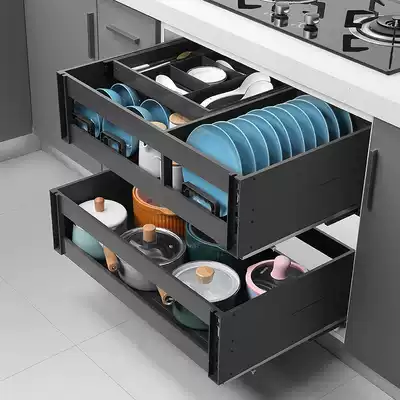 High-end pull basket Kitchen overall cabinet three-layer drawer bowl rack space aluminum pumping extraction flavor basket Aluminum alloy dish basket