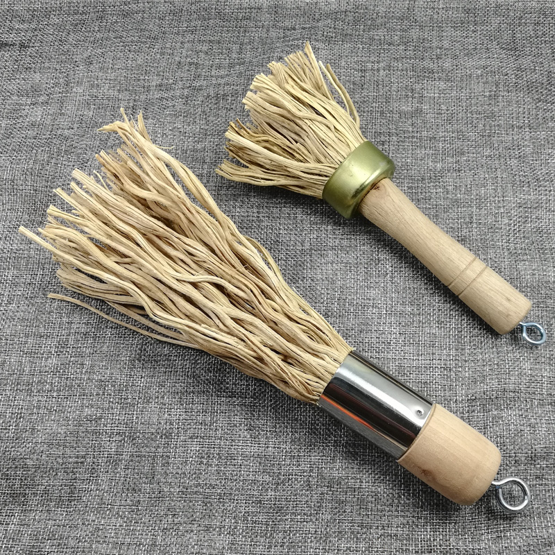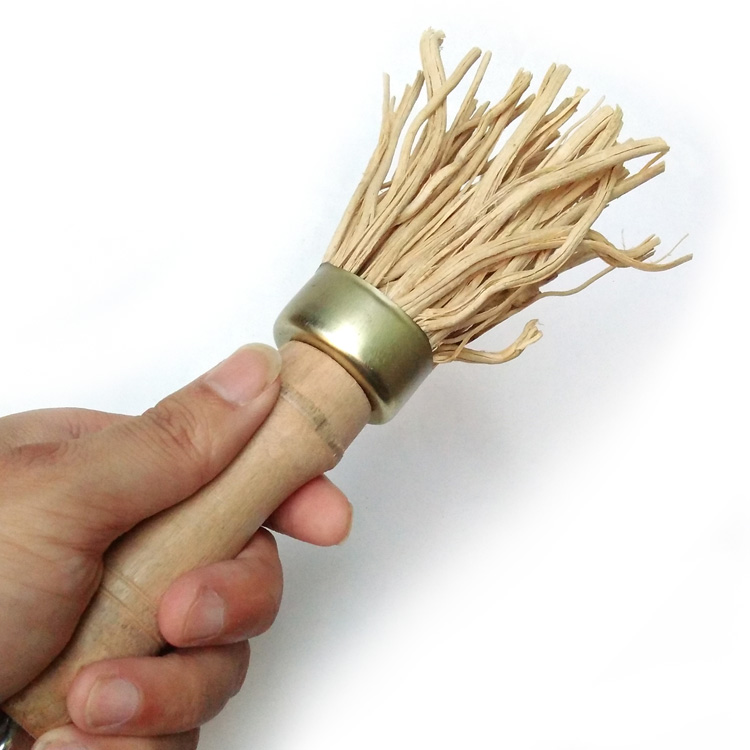 2-pack solid wood long handle bamboo root pot brush Pot brush cleaning brush Kitchen large iron pot flat bottom washing pot brush non-stick oil