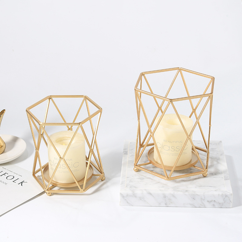Nordic Light Extravaganza Golden Iron Art Geometric Candleholder Pendulum Pieces Retro Props Wedding wedding Romantic Candle Light Dinner Home Decoration