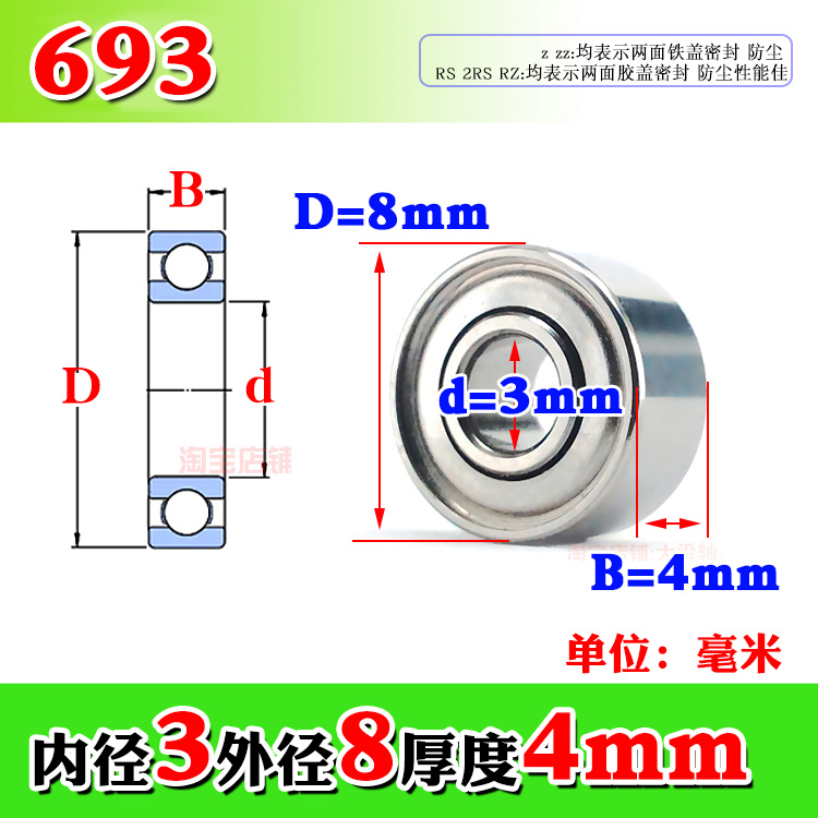 69 3zz (3 * 8 * 4mm) boutique level 69 3zz (3 * 8 * 4mm) Model inner diameter * outer diameter * thickness unit mm Other specifications Please consult customer service