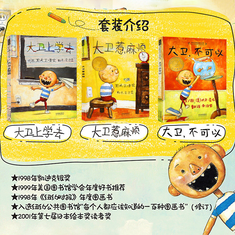 David can't picture book series full set of 3 volumes of first grade reading extracurricular books three-year-old children early childhood education books children's picture books reading kindergarten baby story books 2-3-6-8 years old foreign award-winning classics