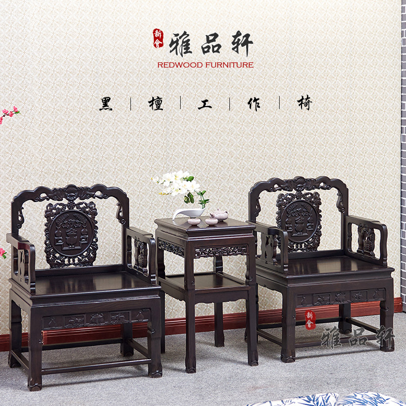 Redwood chair black sandal furniture chair Chinese solid wood chair recreational chair three pieces of royal chair backed chair